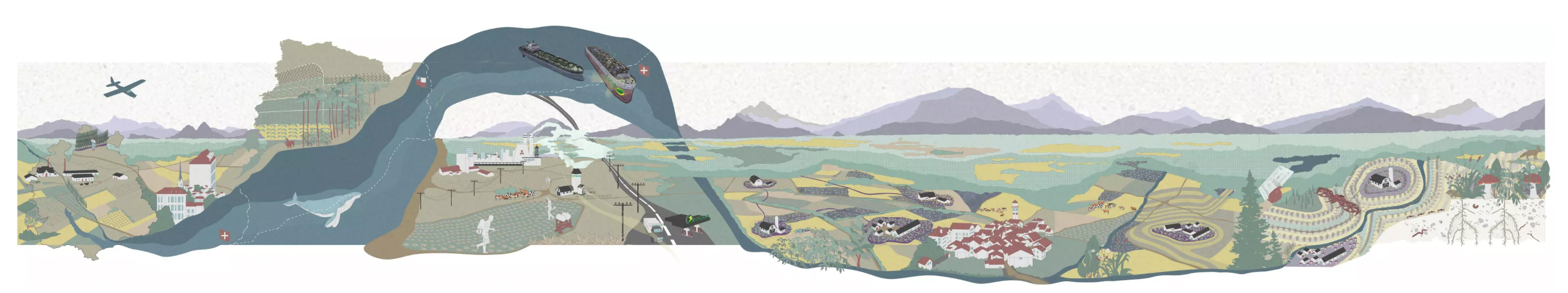 On the highlands, across crop rotation plains and within the drained valley floors the «Agriterritories» of Zurich require immediate action for design to take back its political role within the rural. The ETH Zürich studio Agroecological Repair – Transformative Practices for the Zürich Territory (spring 23) was part of the Masters in Advanced studies in Urban and Territorial Design Confronting pivotal debates. The student work made radical proposals for future transformations in the global food system.