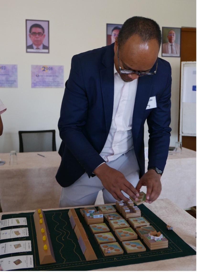 - Water stones, reminiscent of the traditional Malagasy game Fanorona – to track landscape water capacity and flood risks
