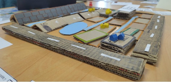 The game allows players to choose between traditional infrastructure, such as turning swamps into water reservoirs or rock filling the earth-based dikes, and blue-green infrastructure like investing in fishponds and recreational water reservoirs or greening the dikes. These infrastructures aim to reduce flood risks while providing food, offering recreational space or enhancing the aesthetics of the landscape. They were inspired by landscape designs developed by architectural students under the lead of Dr. Philipp Urech. The link between the in-game solutions to the visual propositions was discussed with the participants at the end of the game sessions.